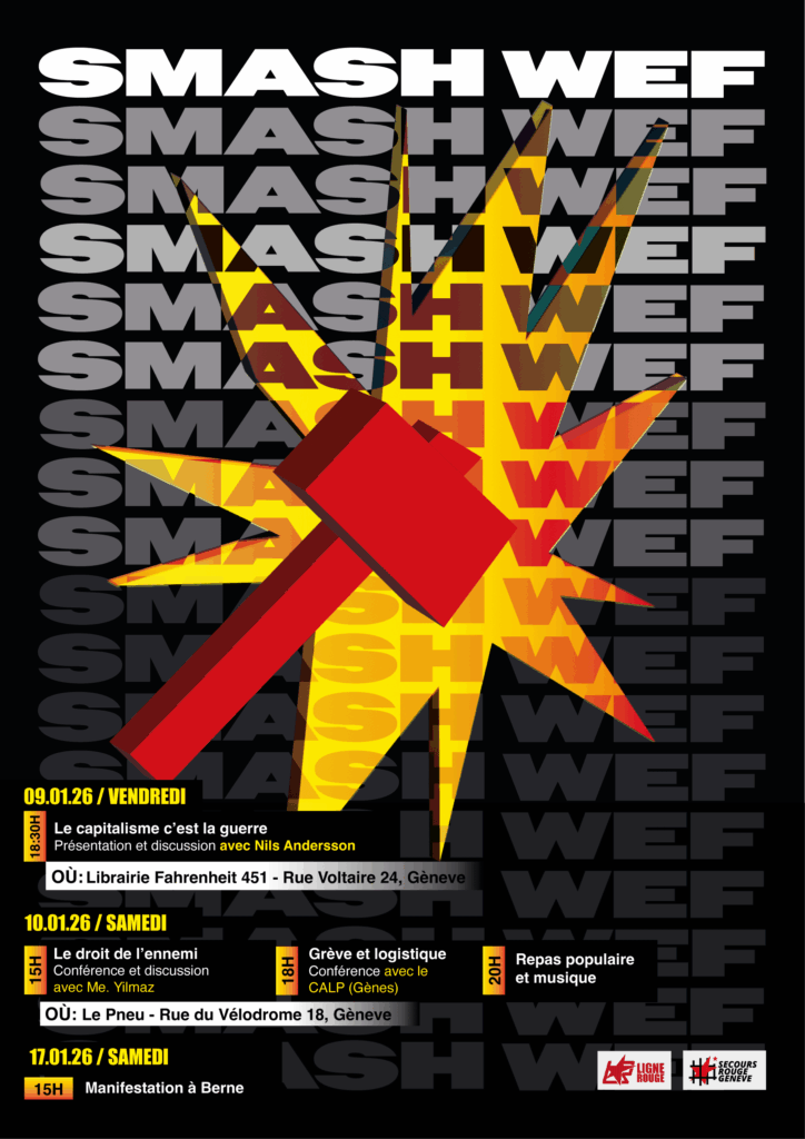 Dans le cadre des mobilisations contre le World Economic Forum (WEF), le Secours Rouge Genève et Ligne Rouge vous invitent pour un week-end de conférences.